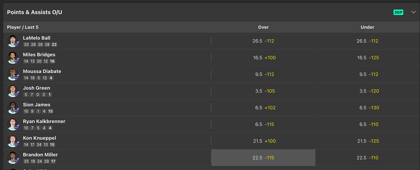 The thing about doing these newsletters is you’ve got to handicap fast before the lines move on you in real time. Today alone, there were multiple spots I liked that already got steamed, forcing a pivot to new edges because we NEVER settle for mediocre bets with meh value. Price sensitivity is so key, so if a number moves and its no longer good, its rewrite the newsletter with new bets.